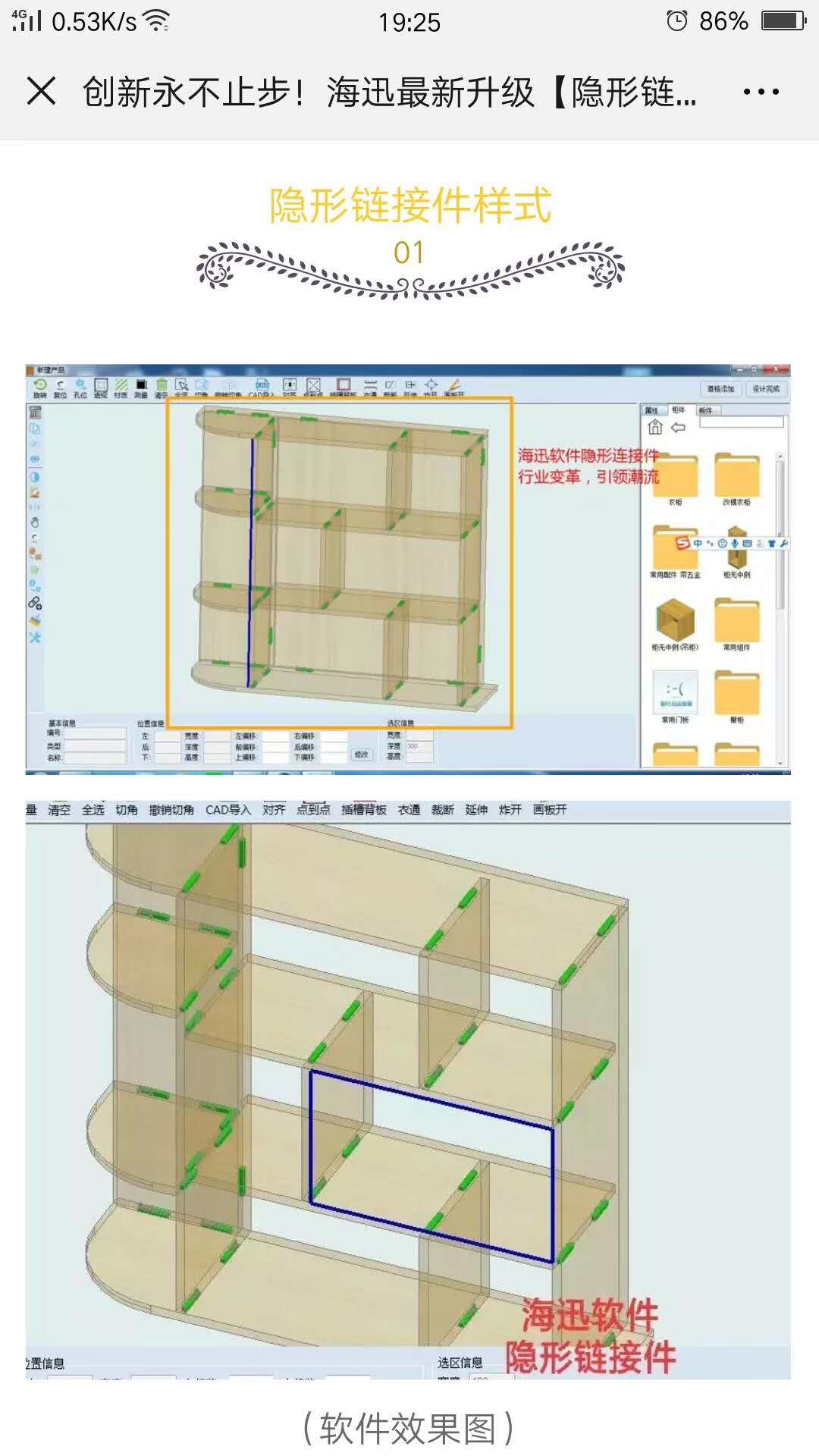 現(xiàn)在還有一種拉米諾的隱形連接件,這種加工的需要的數(shù)控開料機(jī)要求要高一些,側(cè)孔機(jī)工藝也要復(fù)雜一些,這套設(shè)備的話投入要比普通連接件要高不少,所以現(xiàn)在實(shí)際生產(chǎn)這種連接件的還不是很廣泛。