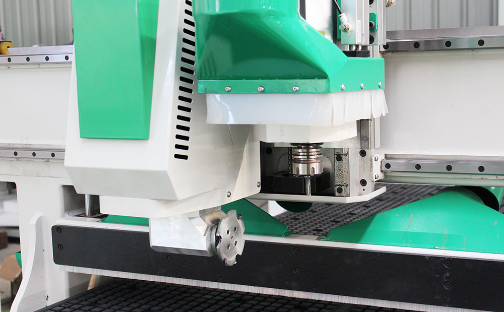 數(shù)控拉米諾開料機(jī)板式家具開料設(shè)備中的一種,主要是數(shù)控化解決板式家具制作中對板材進(jìn)行鉆孔、銑槽、切割、雕刻、銑形等工序。拉米諾開料機(jī)機(jī)器機(jī)頭結(jié)構(gòu)部分必須加裝四軸旋轉(zhuǎn)鋸,用鋸片進(jìn)行銑拉米諾隱形件所需月牙槽。就目前市面上比較先進(jìn)的數(shù)控拉米諾開料機(jī)來說,機(jī)器頭部結(jié)構(gòu)搭配了9KW自動換刀主軸、排鉆組、四軸旋轉(zhuǎn)鋸三大機(jī)械部件。機(jī)器自動換刀主軸配合12把容量刀庫,可以解決各種復(fù)雜生產(chǎn)工序,包括銑形,雕刻,鏤空等,排鉆組能夠提高機(jī)器做定制家具打孔效率,四軸旋轉(zhuǎn)鋸用鋸片銑拉米諾月牙槽,效率高,精度高。并且數(shù)控拉米諾開料機(jī)還能夠加工U型扣、木得易等隱形連接件所需的安裝槽。