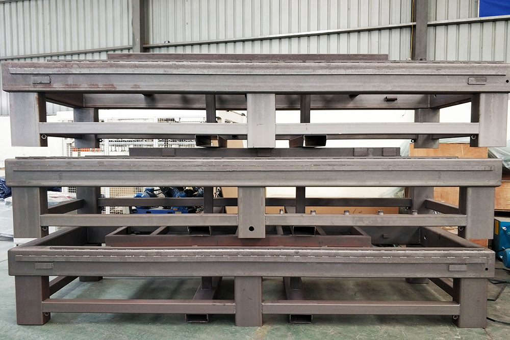 首先來講,從床身上來來說的話,品脈數(shù)控開料機床身全部都是采用整體的8MM的整體鋼板焊接,焊接完成后經(jīng)過打磨,以及后期的回火和噴砂處理。再由公司斥巨資引進的大型五面銑設(shè)備進行齒條安裝面、導軌安裝面及定位裝置安裝面的加工,這樣大大保證了機器裝配精度,提供機器的加工精度和使用壽命。 反之一些小廠家沒有專業(yè)的設(shè)備來進行床身的加工,只能胡亂吹噓,對客戶說的天花亂墜,但是沒有實質(zhì)性的證明。