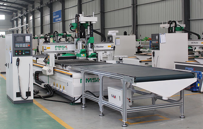 木工加工中心加排鉆是在標(biāo)準(zhǔn)加工中心加排鉆開料機(jī)的基礎(chǔ)上增加自動(dòng)上下料功能,給機(jī)器加裝了一套能夠自動(dòng)抓料的兩個(gè)手臂、一個(gè)上料放板平臺(tái)和自動(dòng)傳送下料平臺(tái)。機(jī)器在加工過程中實(shí)現(xiàn)自動(dòng)化加工,為家具廠生產(chǎn)降低了人工勞動(dòng)強(qiáng)度,提高產(chǎn)量。