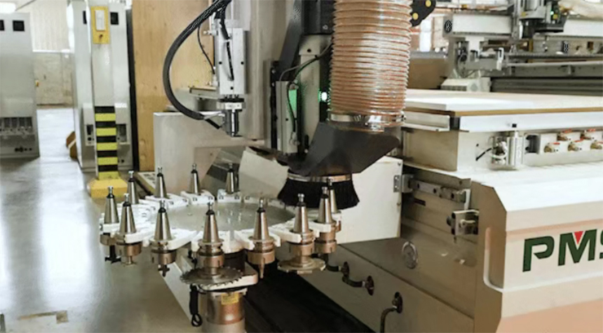 自動換刀主軸,搭配16位圓盤伺服刀庫可完成各種高定工藝。