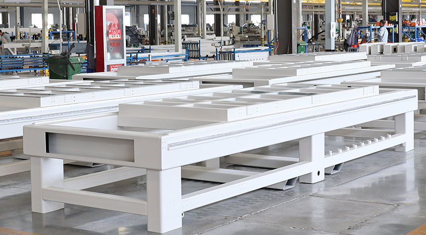 重型床身結(jié)構(gòu),經(jīng)退火,拋丸處理,龍門銑加工,設(shè)備精度高,壽命長。